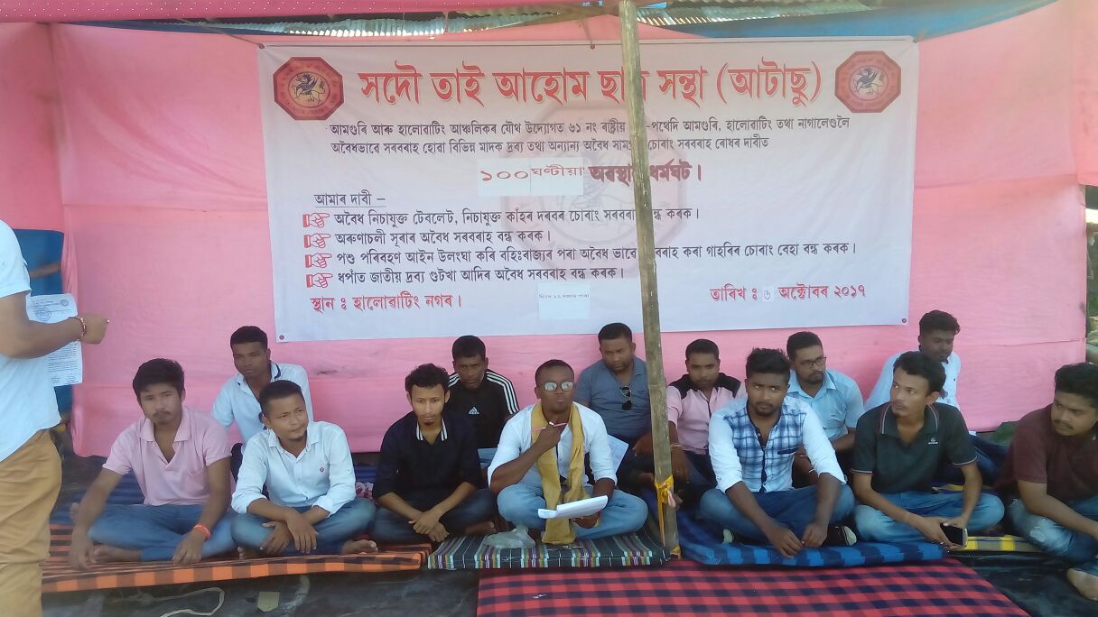 মাদক দ্ৰব্যৰ ব্যৱসায় বন্ধ কৰাৰ দাবীত ১০০ ঘন্টীয়া ধৰ্মঘট