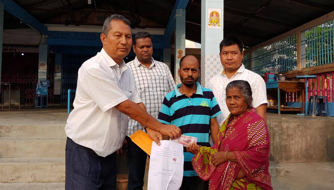কোকৰাঝাৰঃ কোকৰাঝাৰ সদৰ চহৰৰ দৈনিক বজাৰস্থিত শনি মন্দিৰৰ পূজাৰী নিখিল দেৱ নাথক দুৰ্ষ্কৃতিকাৰীয়ে এহছৰ পূৰ্বে হত্যা কৰিছিল৷ হত্যাৰ এবছৰ পিছত সোমবাৰে বিটিচি প্ৰশাসনে নিখিল দেৱ নাথৰ সহধৰ্মিনী সন্ধীয়া দেৱ নাথক দুই লাখ টকাৰ আৰ্থিক অনুদান প্ৰদান কৰে। বিটিচি চৰকাৰৰ হৈ বিটিচিৰ কাৰ্যবাহী সদস্য দনেশ্বৰ গয়াৰীয়ে শনি মন্দিৰ প্ৰাংগনত উপস্থিত হৈ প্ৰয়াত নিখিল দেৱ নাথৰ সহধৰ্মিনী সন্ধীয়া দেৱ নাথক দুই লাখ টকা প্ৰদান কৰে।
