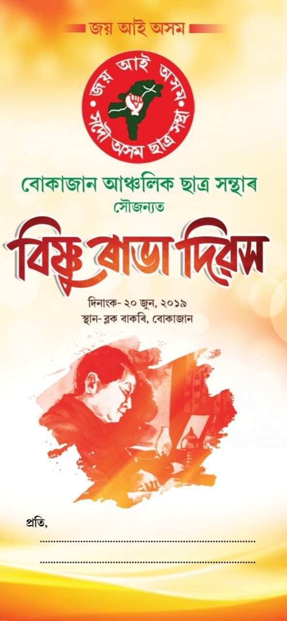 কাৰ্যসূচী অনুসৰি পুৱা ৯ বজাত বোকাজান আঞ্চলিক ছাত্ৰ সন্থাৰ সভাপতি পিতাম্বৰ চেতিয়াই সদৌ অসম ছাত্ৰ সন্থাৰ পতাকা উত্তোলন, সাধাৰণ সম্পাদক অৰিন্দম মহন্তই শ্বহীদ তৰ্পণ আৰু জিলা ছাত্ৰ সন্থাৰ সভাপতি ভৱজ্যোতি বৰাই কলাগুৰু বিষ্ণুপ্ৰসাদ ৰাভাৰ প্ৰতিচ্ছবিত মাল্যাৰ্পণৰে অনুষ্ঠানৰ শুভাৰম্ভণী কৰাৰ লগতে জিলা ছাত্ৰ সন্থাৰ সাধাৰণ সম্পাদক চৰ্জোন হাঞ্চেই বৃক্ষ ৰোপণ কাৰ্যসূচীৰ মুকলি কৰিব৷