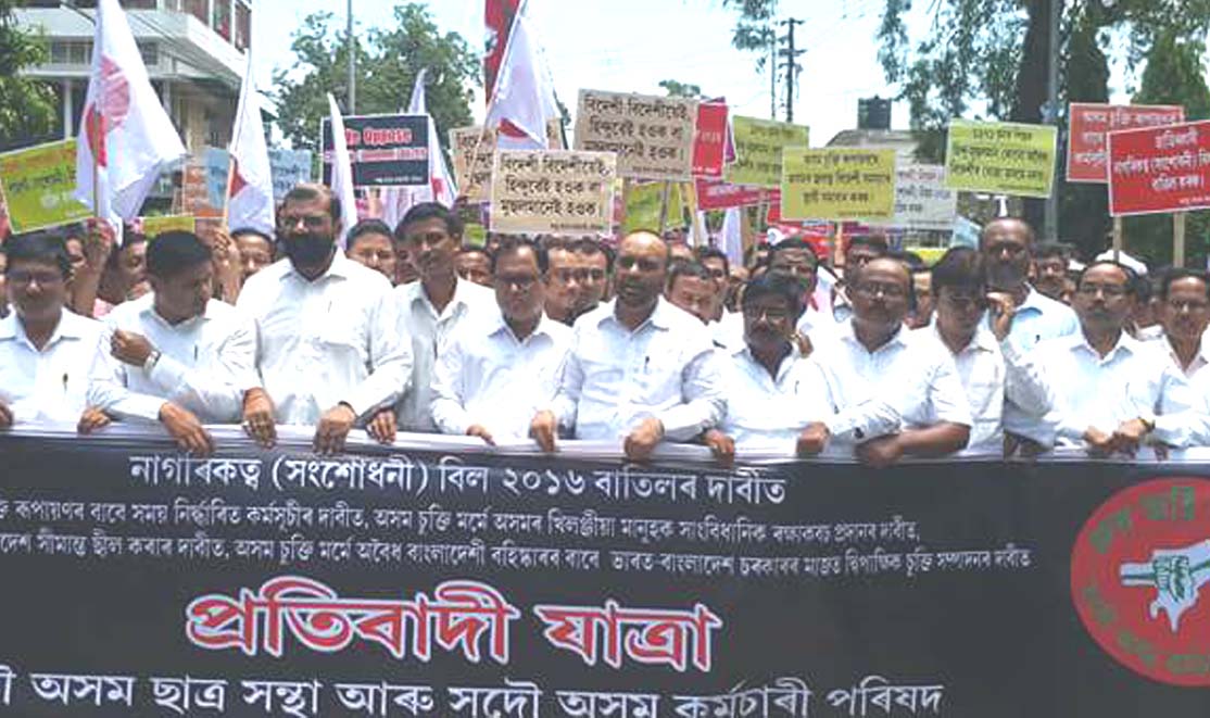 সদৌ অসম ছাত্ৰ সন্থা আৰু সদৌ অসম কৰ্মচাৰী পৰিষদে আছুৰ কাৰ্যালয় শ্বহীদ ন্যাসৰ পৰা ৰাজ ভৱনলৈ উলিওৱা প্ৰতিবাদী সমদলত কেইবাশতাধিক লোকে অংশ লয়৷ সদৌ অসম ছাত্ৰ সন্থাৰ মুখ্য উপদেষ্টা সমুজ্জ্বল কুমাৰ ভট্টাচাৰ্যৰ নেতৃত্বত উলিওৱা সমদলত ৰাজ্যৰ বহু সচেতন নাগৰিক, বুদ্ধিজীৱী, ছাত্ৰ নেতা, ব্যৱসায়ী আদিয়ে অংশ লয়৷