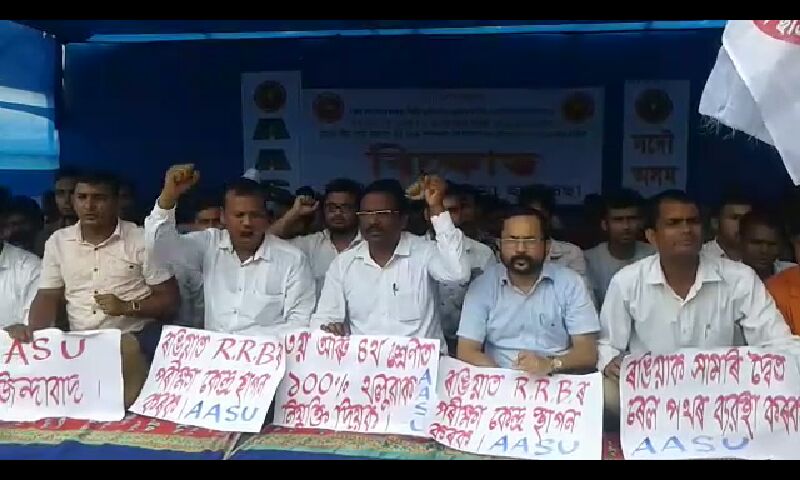 ৰেল বিভাগত থলুৱাক বঞ্চনা, চতুৰ্থ আৰু তৃতীয় শ্ৰেণীৰ পদত ১০০ শতাংশ থলুৱা শিক্ষিত নিবনুৱা যুৱক-যুৱতীক নিযুক্তি দিয়া আৰু অসমকে ধৰি উত্তৰ-পূৰ্বঞ্চালক লৈ সুকীয়া ৰেল নিয়োগ মণ্ডল গঠন কৰাৰ দাবীত এইদৰে প্ৰতিবাদ সাব্যস্ত কৰে ছাত্ৰ সংগঠনটোৱে।