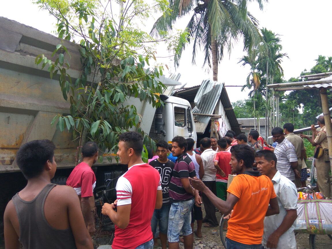 আজি দিনৰ ভাগত বৰনদীৰ পৰা শিল-বালি কঢ়িয়াই অনা এছ ০১-এফচি-২৯৬৪ নম্বৰৰ তীব্ৰবেগী ডাম্পাৰে বাগসাৰ বাঙালীপাৰাত এখন ব্যৱসায়িক প্ৰতিষ্ঠানত খুন্দিয়াই লণ্ড-ভণ্ড কৰাৰ লগতে কথমপি প্ৰাণৰক্ষা পৰে স্বত্বাধিকাৰী জয়কুমাৰ শৰ্মাৰ। শৰ্মাৰ ব্যৱসায়িক প্ৰতিষ্ঠানত ডাম্পাৰখন সোমাই যোৱাৰ লগতে গেলামাল দোকানখনত থকা বিভিন্ন সা-সামগ্ৰীও নষ্ট কৰি পেলায়।