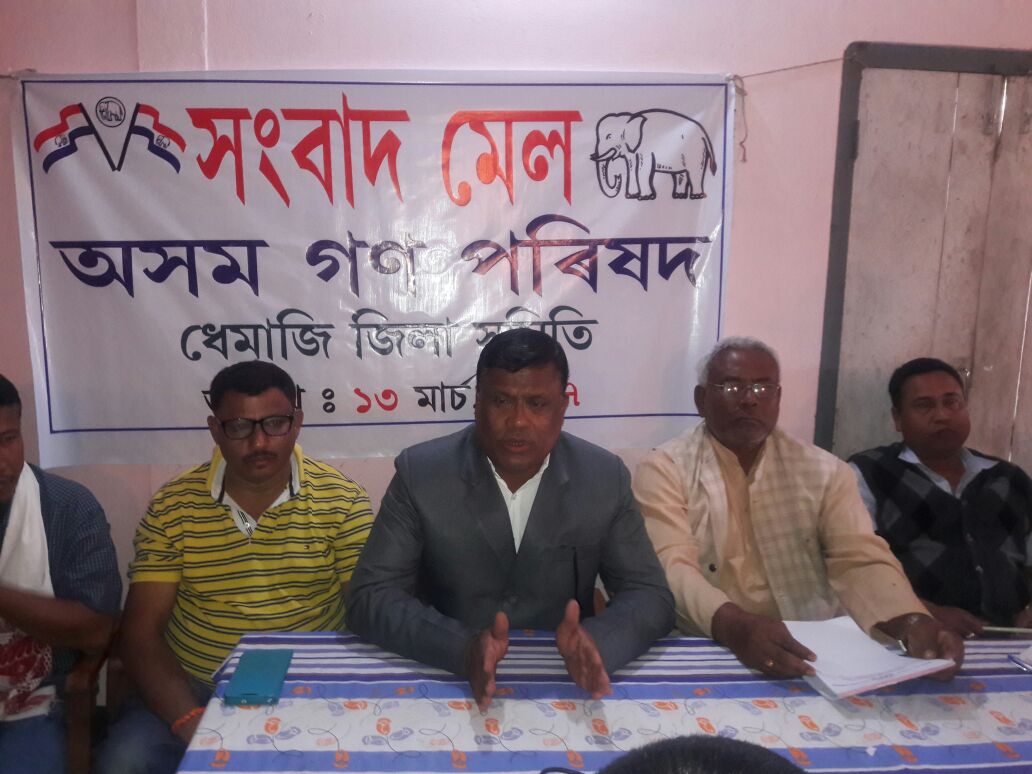 এই বিষয়টোক লৈ আজি দিনৰ ২ বজাত অগপ জিলা সমিতিয়ে এখন সংবাদ মেল অনুষ্ঠিত কৰে। এই সংবাদ মেলত ধেমাজি জিলা সমিতিৰ সভাপতি লক্ষীধৰ শেনছোৱাই ধেমাজি সমষ্টিৰ টিকতটোৰ অসম গণ পৰিষদ দলক দিবৰ বাবে দাবী জনায়।