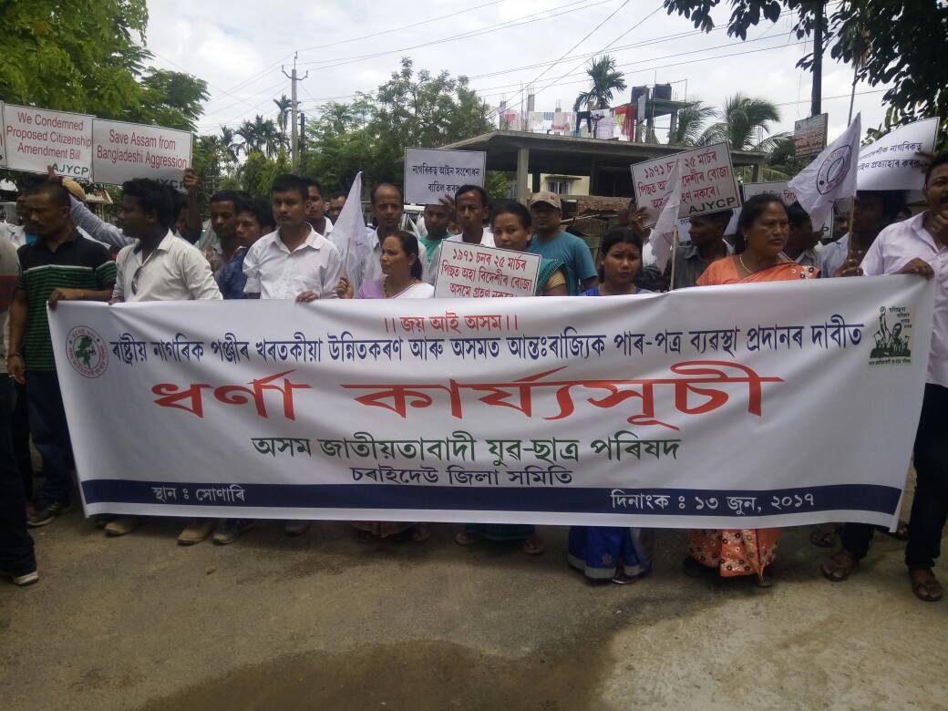 চৰাইদেউত যুৱ-ছাত্ৰ পৰিষদৰ প্ৰতিবাদ