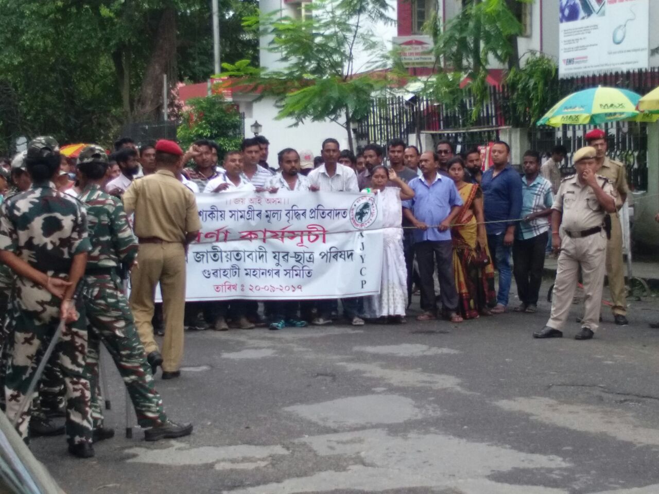 পাঞ্জাবাৰীঃ অত্যাৱশ্যকীয় সামগ্ৰীৰ মূল্যবৃদ্ধিৰ প্ৰতিবাদত অসম জাতীয়তাবাদী যুৱ ছাত্র পৰিষদৰ নৱগঠিত মহানগৰ সমিতিয়ে আজি কামৰূপ মহানগৰ জিলা উপায়ুক্তৰ সন্মুখত প্ৰতিবাদ সাব্যস্ত কৰে।