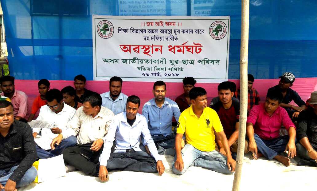 ৰাজ্যৰ শিক্ষা বিভাগৰ অচলাৱস্থাৰ সৃষ্টি হোৱা বুলি অভিযোগ উত্থাপন কৰি ৰাজ্যৰ বিভিন্ন প্ৰান্তৰ লগতে ৰঙিয়াতো অসম জাতীয়তাবাদী যুৱ-ছাত্ৰ পৰিষদৰ ৰঙিয়া জিলা সমিতিয়ে অৱস্থান ধৰ্মঘট কাৰ্যসূচী ৰূপায়ণ কৰে।