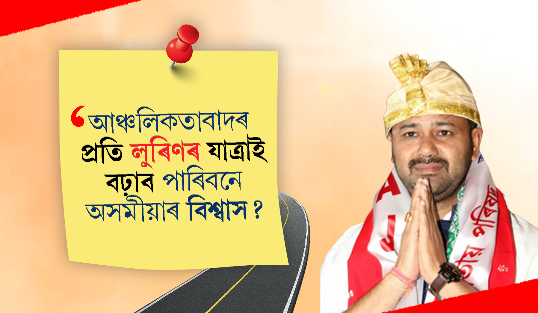 অসমত এতিয়া অলেখ সমস্যা, অলেখ চৰ্চা। মূল্যবৃদ্ধিৰ পৰা নিবনুৱা সমস্যালৈ, মুখ্যমন্ত্ৰীৰ পত্নীৰ ভূমি কেলেংকাৰীৰ পৰা শিলসাঁকোৰ উচ্ছেদলৈ নানান সমস্যা আৰু চৰ্চাই এতিয়া গৰম কৰি ৰাখিছে ৰাজ্যৰ বতাহ। বহুতে অভিযোগ কৰিছে- দেশৰ অন্য প্ৰান্তৰ দৰেই লাহে লাহে বিভেদৰ পোখা মেলিছে অসমীয়াৰ মাজতো। আৰু সেই বিভেদকামী চেতনাক গুৰিতে নিঃশেষ কৰিবলৈ এইবাৰ এক পদযাত্ৰাৰ ঘোষণা কৰিছে অসমৰ আঞ্চলিকতাবাদী ৰাজনৈতিক দল অসম জাতীয় পৰিষদে।