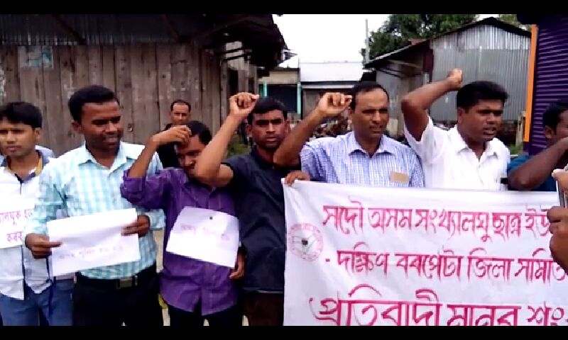 নগৰবেৰাঃ সদৌ অসম সংখ্যালঘু ছাত্ৰ ইউনিয়ন আমছুয়ে দক্ষিণ বৰপেটা জিলা সমিতিৰ উদ্যোগত আজি দিনৰ ১২ বজাত আলোপতি-মাজৰচৰ বজাৰ প্ৰাংগণত এক প্ৰতিবাদী মানৱ শৃংখল কাৰ্যসূচী পালন কৰে।