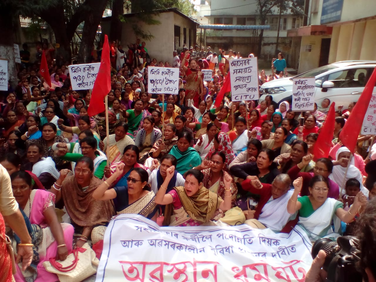 গুৱাহাটীঃ প্ৰতিবাদী ধৰ্ণাত উত্তাল অসম ৰাজ্যিক সমাজ কল্যাণ বিভাগৰ সঞ্চালক কার্যলয়। প্ৰাপ্যৰ দাবীৰে প্ৰতিবাদী কাৰ্যসূচী গ্ৰহণ অসম ৰাজ্যিক অংগনবাড়ী কর্মী, সহায়িকা সন্থা আৰু অসম অংগনৱাড়ী কর্মী, সহায়িকা সন্থাই। তেওঁলোকৰ দাবী যোৱা ২০১৭ চনৰ ৫ জানুৱাৰীৰপৰা ৰাজ্য অংগনবাড়ী কৰ্মীসকলে প্ৰাপ্যৰ দাবীত চৰকাৰৰ বিৰুদ্ধে বাৰম্বাৰ প্ৰতিবাদ জনাইছে। কিন্তু আজি পৰ্যন্ত কোনো ফলাফল লাভ কৰা নাই ৰাজ্য অংগনবাড়ী কর্মী আৰু সহায়িকা সকলে৷ তাৰ প্ৰতিবাদত আজি তেওঁলোক পুনৰ ওলাই আহিবলৈ বাধ্য হৈছে সমাজ কল্যান বিভাগৰ সঞ্চালকালয় কাৰ্যলয়লৈ।