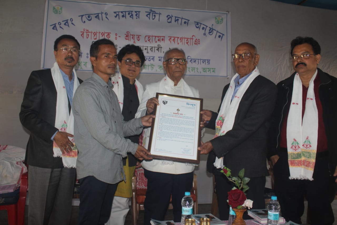 ডিফুঃ “ৰংমিলিৰ হাঁহিৰ স্ৰষ্টা পদ্মশ্ৰী ৰংবং তেৰাঙ পাহাৰীয়া জিলা কাৰ্বি আংলঙৰ ভাষা, সাহিত্য-সংস্কৃতি উত্তৰণৰ বাটকটীয়া ৷” আজি কাৰবি আংলং জিলাৰ বকলিয়াঘাট উচ্চতৰ মাধ্যমিক বিদ্যালয় প্ৰাংগণৰ পৰীক্ষা গৃহত চিংথুৰ প্ৰকাশনে আয়োজন কৰা ৰংবং তেৰাঙ সমন্বয় বঁটা প্ৰদান অনুষ্ঠানত বঁটা গ্ৰহণ কৰি এই মন্তব্য কৰে বিশিষ্ট সাংবাদিক, সাহিত্যিক আৰু বুদ্ধিজীৱি হোমেন বৰগোঁহাঞিয়ে ৷