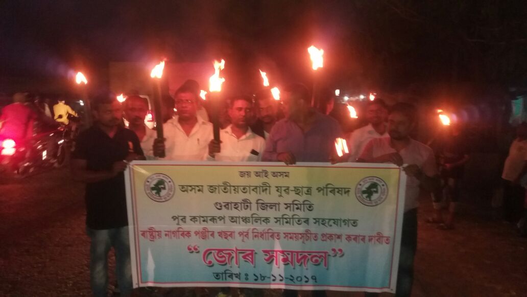 খিলঞ্জীয়া অসমীয়াৰ জাতি মাটি ভেটি সুৰক্ষিত কৰাৰ ৰক্ষাকৱচ ৰাষ্ট্ৰীয় নাগৰিক পঞ্জীৰ খচৰা প্ৰকাশকলৈ ৰাজনৈতিক দলৰ নেতাই ন্যায়লয়ৰ নিৰ্দেশকো অৱমাননা কৰি ৰাজনৈতিক স্বাৰ্থ সিদ্ধিৰ বাবে বিভিন্ন ষড়যন্ত্ৰত লিপ্ত হোৱাৰ অভিযোগ উত্থাপন কৰে অসম জাতীয়তাবাদী যুৱ-ছাত্ৰ পৰিষদৰ গুৱাহাটী জিলা সমিতিয়ে৷ ৰাষ্ট্ৰীয় নাগৰিক পঞ্জীৰ খচৰা প্ৰকাশকলৈ ৰাজনীতি নকৰিবলৈ সকলো পক্ষক সকীয়নি প্ৰদান কৰি পূৰ্ব নিৰ্ধাৰিত অহা ৩১ ডিচেম্বৰত ৰাষ্ট্ৰীয় নাগৰিক পঞ্জীৰ খচৰা প্ৰকাশ কৰিবলৈ চৰকাৰৰ ওচৰত দাবী জনায়।