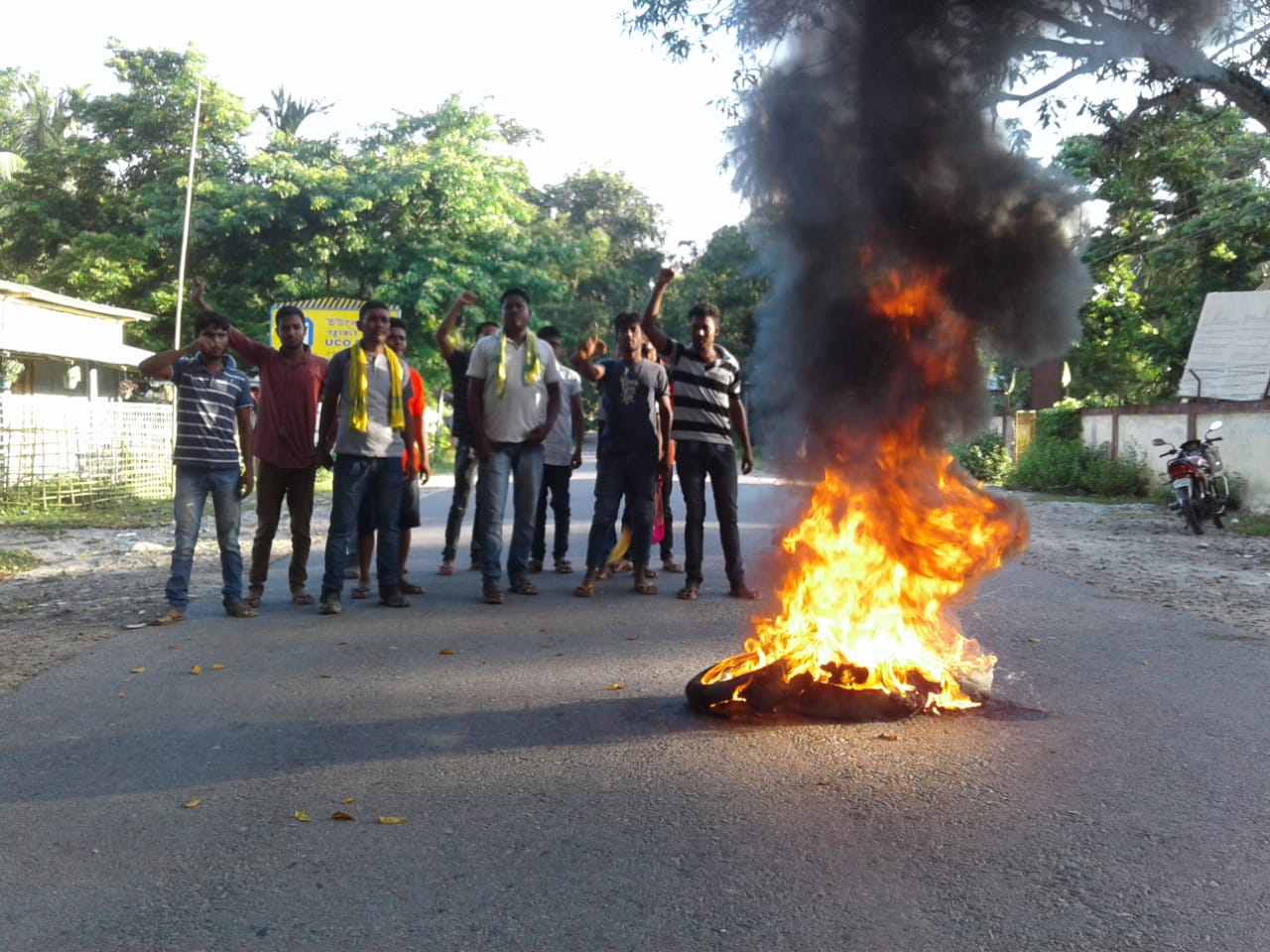কোচ ৰাজবংশী জনগোষ্ঠীক জনজাতিকৰণ আৰু পৃথক কমতাপুৰ ৰাজ্য গঠনৰ দাবীত পুৱাৰে পৰা ৰাজ্যৰ বিভিন্ন প্ৰান্তত আক্ৰাছুৰ একাংশ সমৰ্থক ৰাজপথলৈ ওলাই আহি পথত টায়াৰ জ্বলাই প্ৰতিবাদ সাব্যস্ত কৰা পৰিলক্ষিত হয়৷