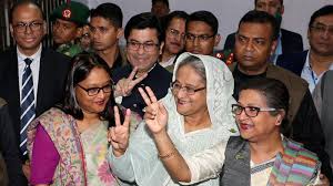 ঢাকাঃ বাংলাদেশৰ সাধাৰণ নিৰ্বাচনত অভাৱনীয় বিজয় সাব্যস্ত কৰি প্ৰধানমন্ত্ৰী শ্বেখ হাছিনাই চতুৰ্থবাৰৰ বাবে শাসনত তধিস্থিত হ’ল। অৱশ্যে বিৰোধীয়ে এই নিৰ্বাচনত ব্যাপক ৰিগিং হোৱাৰ অভিযোগ তুলি পুনৰ ভোটগ্ৰহণৰ দাবী উত্থাপন কৰিছে। অতি কমেও ১৭ জন লোকে প্ৰাণ দিবলগীয়া হোৱা এই ৰক্তাক্ত নিৰ্বাচনত ৩০০ খন আসনৰ ভিতৰত শাসনাধিস্থিত আৱামী লীগে ২৮৮ খন আসন লাভ কৰিবলৈ সক্ষম হয়। মূল বিৰোধীয়ে মাত্ৰ ছখন আসনহে দখল কৰিবলৈ সক্ষম হয় বুলি প্ৰকাশ কৰিছে নিৰ্বাচন আয়োগৰ সচিব হেলাল উদ্দিন আহমেদে। এই নিৰ্বাচনত তচনচ হোৱা বিৰোধীৰ মিত্ৰযোটৰ মুৰব্বী কমল হুছেইনে কয় যে এখন নিৰপেক্ষ চৰকাৰৰ অধীনত আমি অতি সোনকালে নতুনকৈ নিৰ্বাচন অনুষ্ঠিত হোৱাটো বিচাৰোঁ। মন কৰিবলগীয়া যে ৭১ বছৰীয়া হাছিনাই দেশখনৰ অৰ্থনৈতিক ভেটি টনকীয়াল কৰাৰ লগতে চুবুবীয়া ম্যানমাৰত নিগ্ৰিহীত ৰহিংগ্যাসকলক আশ্ৰয় দিয়াৰ বাব দেশখনত জনপ্ৰিয়তা বৃদ্ধি পাইছে। কিন্তু বিৰোধী বি এন পি নেত্ৰী খালেদা জীয়ক ১৭ বছৰ কাৰাগাৰলৈ নিক্ষেপ কৰাৰ বাবে সমালোচনাৰ সম্নুখীন হেছে।