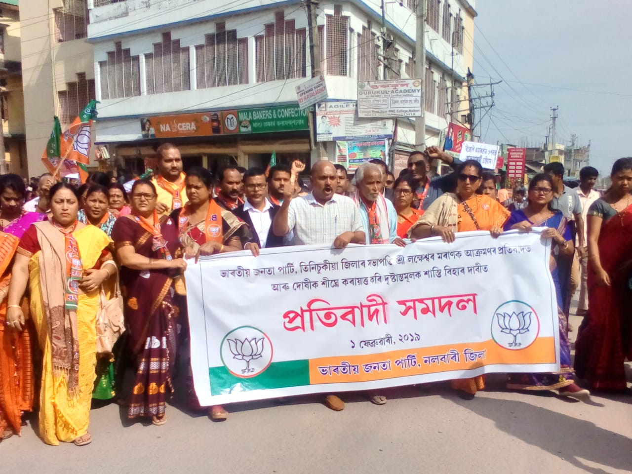 উল্লেখ্য যে, তিনিচুকীয়া জিলা বিজেপিৰ সভাপতি লক্ষেশ্বৰ মৰাণক কৰা আক্ৰমণৰ প্ৰতিবাদ আৰু নাগৰিকত্ব সংশোধনী বিধেয়কৰ বিৰুদ্ধে অপপ্ৰচাৰ চলোৱা অভিযোগ উত্থাপন কৰি নলবাৰীত বিজেপিয়ে কালি কটকটীয়া নিৰাপত্তা বেষ্টনীৰ মাজত এনেদৰে বৃহৎ সমদল উলিয়ায়।