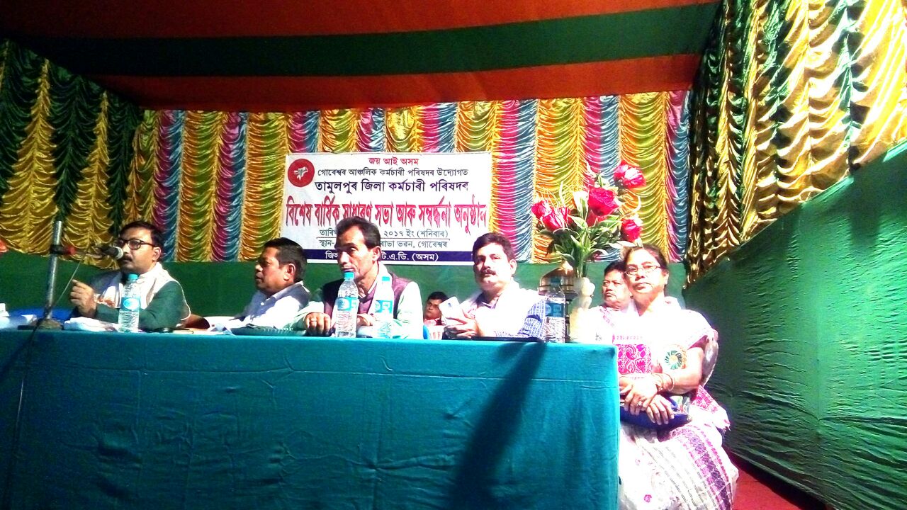 শনিবাৰে গোৰেশ্বৰত স্থানীয় কলাগুৰু বিষ্ণু ৰাভা ভৱনত তামুলপুৰ জিলা কৰ্মচাৰী পৰিষদৰ পঞ্চম বাৰ্ষিক সাধাৰণ সভা তথা বিশেষ সম্বৰ্ধনা অনুষ্ঠানত মুখ্য অতিথি হিচাপে উপস্থিত থাকি তেওঁ আৰু কয় যে চৰকাৰী কৰ্মচাৰী সকলৰ বাবে বিনামূলীয়া চিকিৎসা সেৱা আচঁনি প্ৰস্তুত কৰিবলৈ চৰকাৰক দাবী জনোৱা হৈছে আৰু ইয়াৰ কামো বহুখিনি আগবাঢ়িছে। ইপিনে নিউ পেঞ্চন ৰুলৰ কৰ্মচাৰী পৰিষদে বিৰোধিতা কৰা বুলি কয়। কৰ্মচাৰীসকলে যেনেদৰে একাউণ্ট পে’ৰ সুবিধা লাভ কৰিছে তেনেদৰে অচিৰে অন লাইন পেমেন্টৰ সুবিধাও লাভ কৰিব।