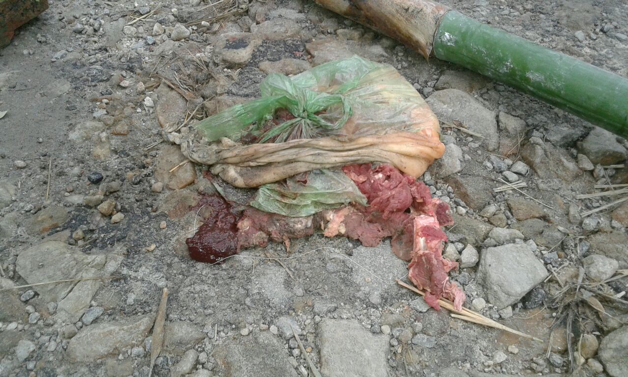 পলিথিনৰ পেকেটত অনা মাংসৰ টোপোলা তিনিটাকৈ স্থানত উদ্ধাৰ কৰে স্থানীয় ৰাইজে৷ কোনো লোকে লৈ অনা মাংসখিনি অসাৱধানভাৱে পথত পৰি যোৱাৰ সন্দেহ ৰাইজে ব্যক্ত কৰাৰ বিপৰীতে একাংশই এয়া কোনো দুস্কৃতিকাৰীয়ে শান্তি-সম্প্ৰীতি বিঘ্নিত কৰাৰ ষড়যন্ত্ৰ বুলি সন্দেহ প্ৰকাশ কৰিছে ৷