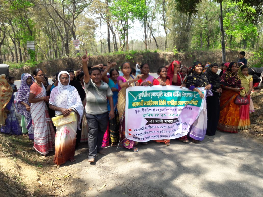 বিলাসীপাৰাঃ বিলাসীপাৰা মহকুমাধিপতিৰ কাৰ্যালয়ৰ চৌহদত ধুবুৰী জিলাৰ কৃষক মুক্তি সংগ্ৰাম সমিতি আৰু ৰন্ধন কৰ্মী সহায়িকাসকলে তিনি ঘণ্টীয়া অৱস্থান ধৰ্মঘট পালন কৰে।