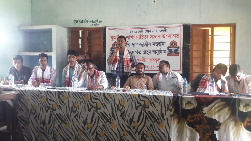 এই গুৰুত্বপূৰ্ণ মন্তব্য আগবঢ়াই সাহিত্য সভাৰ উদ্যোগত কুমলীয়াত অনুষ্ঠিত হোৱা এক অভিনন্দন অনুষ্ঠানত। কুমলীয়া শাখা সাহিত্য সভাৰ উদ্যোগত ২০১৯ বৰ্ষৰ হাইস্কুল আৰু উচ্চতৰ মাধ্যমিক শিক্ষান্ত পৰীক্ষাত সুখ্যাতিৰে উত্তীৰ্ণ হোৱা কৃতী ছাত্ৰ-ছাত্ৰীক অভিনন্দন জ্ঞাপন কৰাৰ উদ্দেশ্যে কুমলীয়া হাইস্কুল প্ৰাংগনত এক অভিনন্দন অনুষ্ঠান অনুষ্ঠিত হয়। কুমলীয়া শাখা সাহিত্য সভাৰ সভাপতি আশ্ৰফ আলিয়ে সভাৰ আসন অলংকৃত কৰা সভাখনত সভাৰ উদ্দেশ্য বাখ্যা কৰে সাধাৰণ সম্পাদক জাকিৰ হুছেইনে।