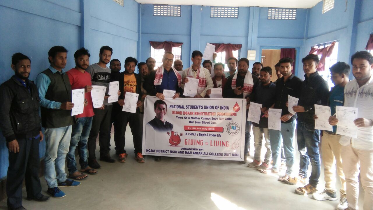 মোৰাঝাৰঃ সোমবাৰে হোজাই জিলাৰ ডবকাত ভৰতীয় জাতীয় ছাএ ইউনিয়ন চমুকৈ এন এছ ইউ আইৰ হোজাই জিলা সমিতিৰ উদ্যোগত ৰক্তদান পঞ্জীয়ন শিবিৰ অনুষ্ঠিত হয়৷