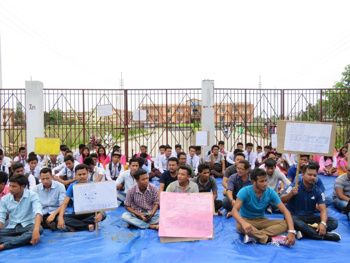 বিশ্ববিদ্যালয়খনৰ পঞ্জীয়ক ড° শেখৰ ব্ৰহ্ম আৰু কলেজ আৰু বিশ্ববিদ্যালয় উন্নয়ন পৰিষদৰ(চিইউডিচি) সঞ্চালক ড° দীননাথ বসুমতাৰীৰ বিৰুদ্ধে উপাচাৰ্যগৰাকীয়ে পক্ষপাতমুলক ভূমিকা গ্ৰহণ কৰাৰ পৰিণতিতে ৰাজ্যপালে পঞ্জীয়ক আৰু চিইউডিচিৰ সঞ্চালকক অপসাৰণ কৰিছে বুলি অভিযোগ উত্থাপনেৰে আজি বিশ্ববিদ্যালয় ছাত্ৰ গোটৰ উদ্যোগত বিশ্ববিদ্যালয়ৰ একাংশ ছাত্ৰ ছাত্ৰীৰ লগতে একাংশ মহাবিদ্যালয়ৰ ছাত্ৰ-ছাত্ৰীয়ে ভিচি হায় হায়, ভিচি গ’ বেক, ভিচি মুৰ্দাবাদ আদি ইত্যাদি শ্লোগানেৰে বিশ্ববিদ্যালয়ৰ পৰিৱেশ উত্তাল কৰি তোলে।