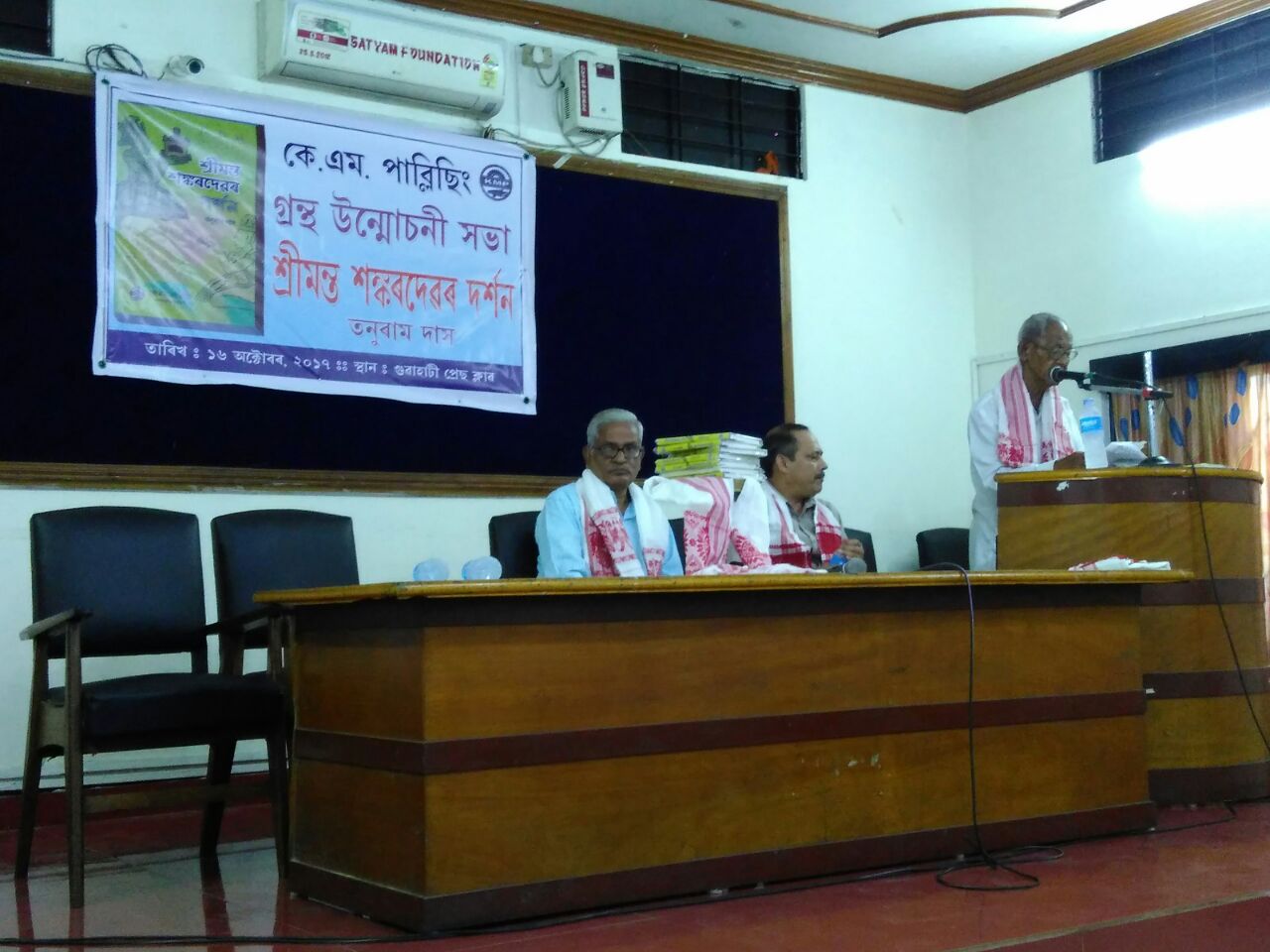 আজি গুৱাহাটী প্ৰেছ ক্লাৱত কে এম পাব্লিকেশ্যনৰ দ্বাৰা প্ৰকাশিত এই ‘শ্ৰী মন্ত শংকৰদেৱ দৰ্শন’ পুথি খন উন্মোচন কৰে গুৱাহাটী প্ৰেছ ক্লাৱৰ সম্পাদক নৱ ঠাকুৰীয়া আৰু পুথি খনৰ প্ৰকাশক নাৰায়ন চন্দ্ৰ দে’য়ে।