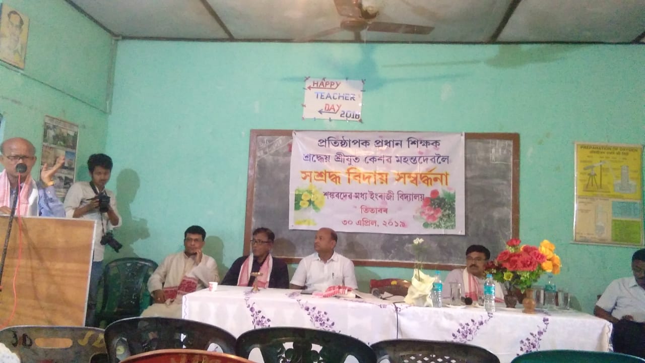 শংকৰদেৱ মধ্য ইংৰাজী বিদ্যালয়ৰ প্ৰতিষ্ঠাপক প্ৰধান শিক্ষক কেৱল মহন্তৰ বিদায় সম্বৰ্ধনা