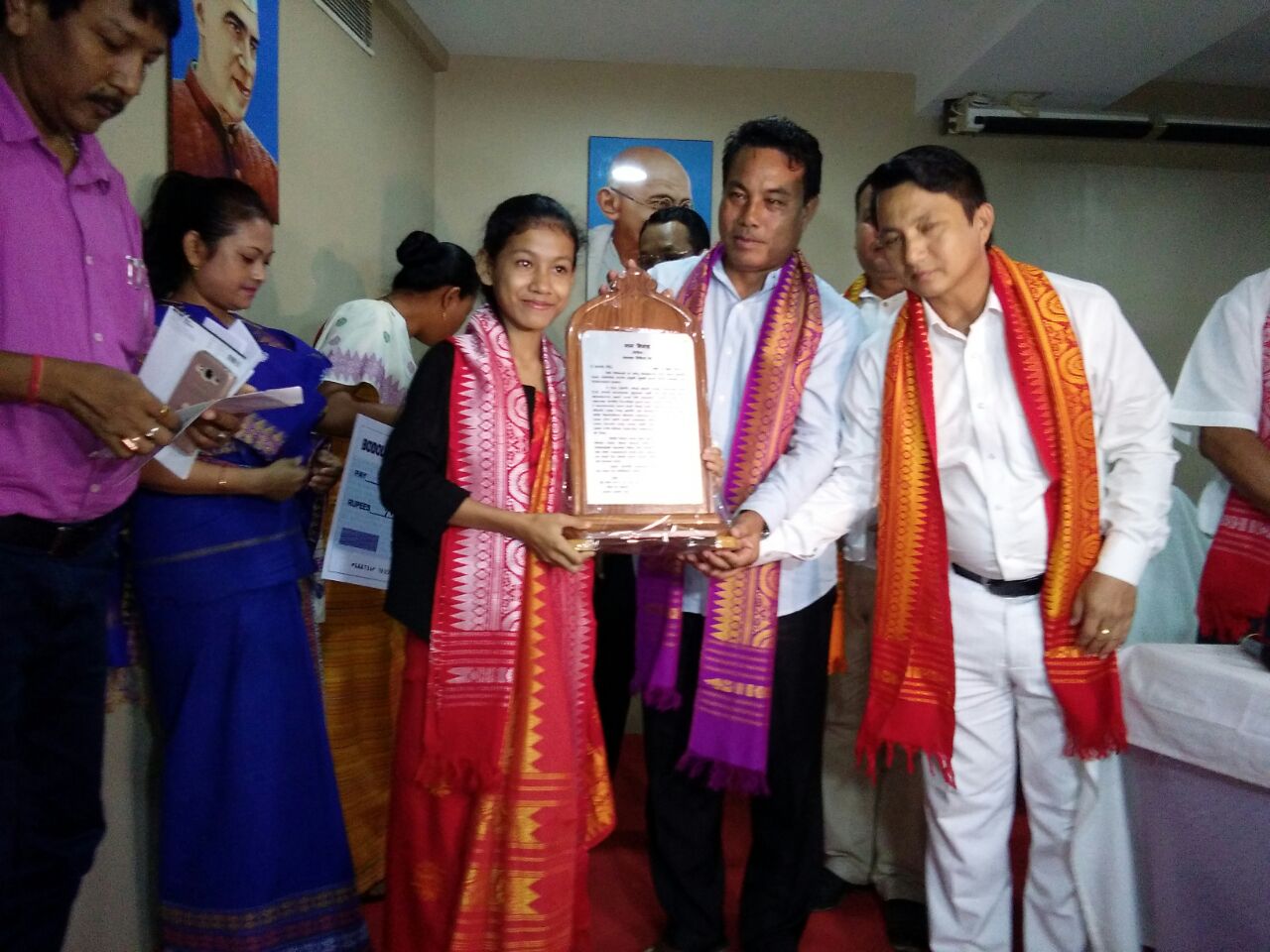 কোকৰৰাঝাৰঃ কালাৰ্চ টিভিৰ ৰাইজিং ষ্টাৰ ৰিয়েলিটি শ্বৰ ছয় ফাইনেলিষ্টৰ এগৰাকী নিকিতা বড়োক আজি সম্বৰ্ধনা জনায় বিটিচি প্ৰশাসনে। বি টি চিৰ সচিবালয়ৰ প্ৰেক্ষাগৃহত আজি বি টি চিৰ সাংস্কৃতিক বিভাগৰ উদ্যোগত আৰু কাৰ্য্যবাহী সদস্য বনজাৰ দৈমাৰীৰ সভাপতিত্বত অনুষ্ঠিত হোৱা সম্বৰ্ধনা সভাত নিকিতা বড়োক বিটিচিৰ উপ-মুখ্য কাৰ্যবাহী খাম্ফা বৰগয়াৰীয়ে শিল্পীগৰাকীক উষ্ম সম্বৰ্ধনা জনাই পাঁচ লাখ টকাৰ চেক প্ৰদান কৰাৰ লগতে আৰনাই, ফুলৰ থোপা আৰু মানপত্ৰ প্ৰদান কৰে।