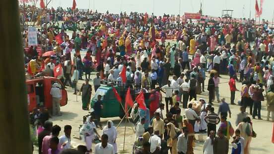 গুৱাহাটীঃ ৰাজ্যৰ ভিন্ন প্ৰান্তৰ পৰা আহি গুৱাহাটীৰ শুক্লেশ্বৰ ঘাটৰ বালিচৰত সমবেত হ’ল হাজাৰ হাজাৰ কৃষক শ্ৰমিক। দেশ স্বাধীন হোৱাৰ পৰাই চৰকাৰ তথা পুঁজিপতিয়ে শ্ৰমিক-কৃষকসকলক বিভিন্ন প্ৰকাৰে লাঞ্চনা-বঞ্চনা কৰি অহাৰ প্ৰতিবাদত আজি কেইবা হাজাৰ কৃষক শ্ৰমিক সমবেত হৈ এনেদৰে প্ৰতিবাদ সাব্যস্ত কৰে।