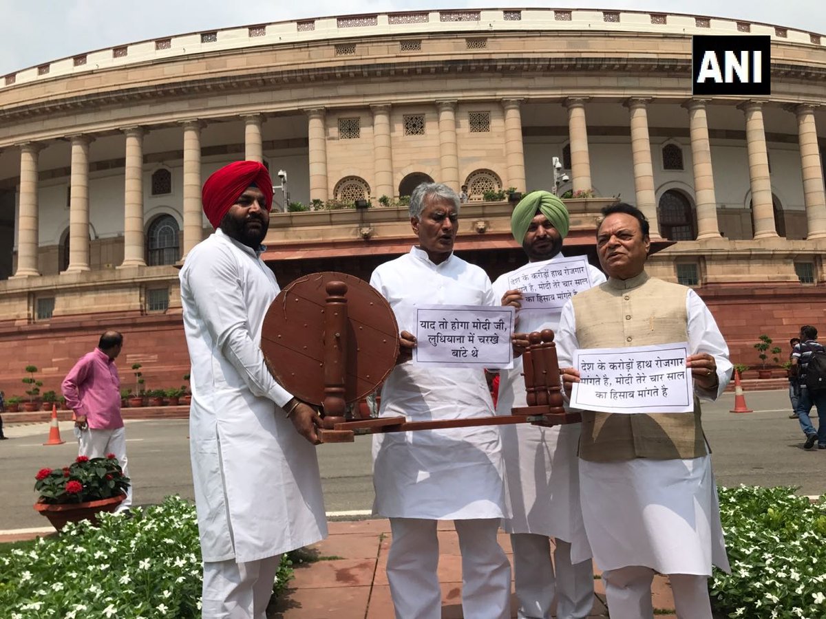 ইয়াৰ লগে লগে কংগ্ৰেছৰ সাংসদসকলে বিজেপি চৰকাৰে নিৱনুৱাক সংস্থাপন দিব নোৱাৰাৰ অভিযোগ উত্থাপন কৰি সংসদ ভৱনৰ চৌহদত প্ৰতিবাদ সাব্যস্ত কৰে। হাতত প্লেকাৰ্ড লৈ আৰু যতৰ লৈ প্ৰতিবাদ জনায় বিজেপি চৰকাৰে নিবনুৱাক সংস্থাপন দিব নোৱাৰাৰ অভিযোগ উত্থাপন কৰে।