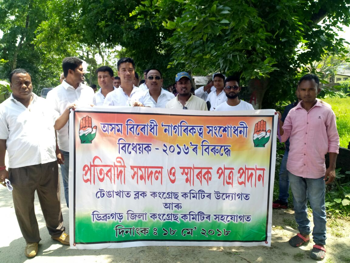 শুকুৰবাৰে টেঙাখাট টাউনত ব্ল’ক কংগ্ৰেছৰ উদ্যোগত এটি সমদল উলিয়াই নাগৰিকত্ব সংশোধনী বিধেয়কৰ বিৰুদ্ধে প্ৰতিবাদ সাব্যস্ত কৰে৷ টেঙাখাট টাউনৰ পৰা টেঙাখাট ৰাজহ চক্ৰ বিষয়াৰ কাৰ্যালয়লৈ প্ৰতিবাদী সমদল উলিয়াই ৰাজহ চক্ৰ বিষয়াৰ জৰিয়তে চৰকাৰক স্মাৰক পত্ৰ প্ৰেৰণ কৰে৷