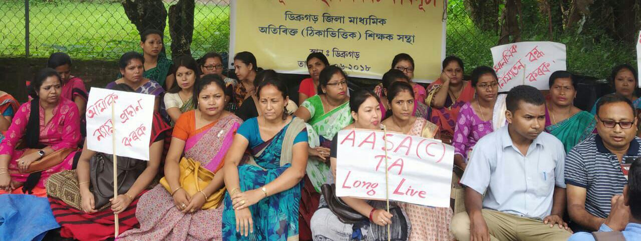 newsnextone.com | ডিব্ৰুগড়ঃ চাকৰি নিয়মীয়াকৰণৰ দাবীত বিভিন্ন সময়ত ৰাজপথলৈ ওলাই অহাৰ পিছতোঁ ঠিকাভিত্তিক শিক্ষকসকলৰ চাকৰি আজিলৈ নিয়মীয়াকৰণ কৰা নহ’ল। ৮ বছৰ ধৰি ৰাজ্যৰ বিভিন্ন প্ৰান্তৰ হাইস্কুল পৰ্যায়ত শিক্ষাদান কৰি থকা ঠিকাভিত্তিক শিক্ষকৰ জীৱনক লৈ হেতালি খেলিছে ৰাজ্যৰ শিক্ষা বিভাগে৷ এই অভিযোগ সময়ে সময়ে উত্থাপন কৰিছে আহিছে ২০১০ চনতে নিযুক্তি পায়ো অনিশ্চয়তাত ডুবি থকা ৬৫০৬ জন ঠিকাভিত্তিক শিক্ষকে। অনিশ্চয়তাত ভোগা ঠিকাভিত্তিক শিক্ষকসকলৰ চাকৰি নিয়মীয়াকৰণৰ দাবী ৰাজ্যত পুনৰাই উত্থাপন হৈছে৷