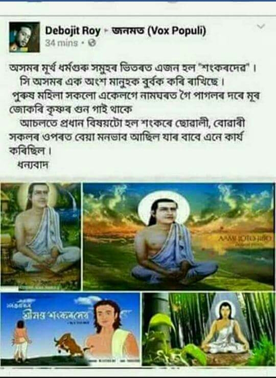 অসমীয়াৰ আবেগ, অনূভূতি শংকৰদেৱ৷ শংকৰদেৱে বৃহত্তৰ অসমীয়া জাতি গঠনৰ প্ৰক্ৰিয়া আৰম্ভ কৰি সাহিত্য, সংস্কৃতিৰ ভড়াল তাহানিতে চহকী কৰি গৈছে৷ সাংস্কৃতিক প্ৰমূল্য বোধেৰে একশৰণ নাম ধৰ্ম প্ৰচাৰেৰে অসমৰ সমাজ-জীৱনক এক কৰি ঐক্য-সংহতি ৰক্ষা কৰিছিল।
