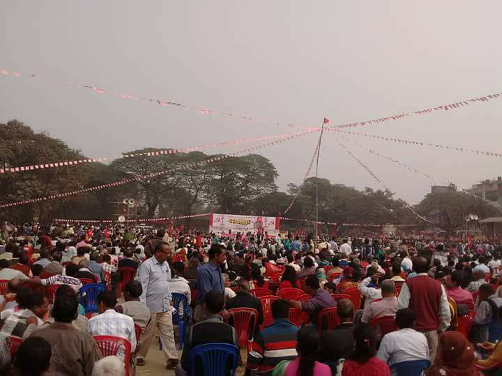 গুৱাহাটীঃ দেওবাৰে গুৱাহাটী মহানগৰীৰ সোণাৰাম উচ্চতৰ মাধ্যমিক বিদ্যালয়ৰ খেলপথাৰত চিপিআইএমৰ এখন সমাবেশ অনুষ্ঠিত হয়৷ৰাজ্যৰ বিভিন্ন প্ৰান্তৰ পৰা ৰেল-যাত্ৰীবাহী বাছ আদিৰে পুৱাৰে পৰা সোণাৰাম উচ্চতৰ মাধ্যমিক বিদ্যালয়ৰ খেল পথাৰত সমবেত হয় শ-শ লোক৷ চিপিআইএমৰ অসম ৰাজ্যিক সন্মিলন উপলক্ষে অনুষ্ঠিত হয় সমাবেশ।চিপিআইএম নেতা উদ্ধব বৰ্মনৰ সভাপতিত্বত অনুষ্ঠিত মুকলি সভাত চিপিআইএমৰ পলিটব্যুৰৰ সদস্য এছ আৰ পিল্লাই অংশ গ্ৰহণ কৰি বিজেপি চৰকাৰক তীব্ৰ সমালোচনা কৰি দৰিদ্ৰ বিৰোধী চৰকাৰ আখ্যা দিয়ে৷