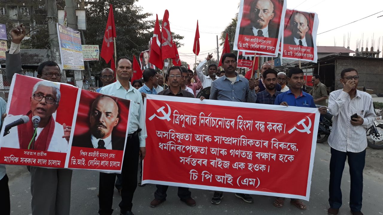 ৰঙিয়াতো চি পি আইএমেে সমদল উলিয়াই পথসভা অনুষ্ঠিত কৰে৷ বুধবাৰে ৰঙিয়া আঞ্চলিক সমিতিৰ সভাপতি বীৰেন্দ্ৰ শৰ্মাৰ নেতৃত্বত মুখ্য কাৰ্যালয়ৰ পৰা হাতে হাতে বেনাৰ, প্লেকাৰ্ড আদি লৈ বিজেপি হুচিয়াৰ, বিজেপিৰ একনায়কত্ববাদ নচলিব, কমিউনিজিম জিন্দাবাদ, প্ৰধানমন্ত্ৰী নৰেন্দ্ৰ মোদী হায় হায়, লেনিনৰ প্ৰতিমূৰ্তি ধ্বংসকাৰীসকলক শীঘ্ৰে কৰায়ত্ত কৰক আদি ধ্বনি দি চহৰখনৰ মাজেৰে সমদল কৰি পৰিৱেশ উত্তাল কৰি তোলে৷