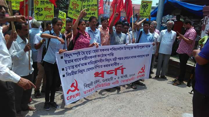 ৰাজ্যত বিদ্যুৎ সেৱা নিয়মীয়া কৰা, বিদ্যুৎস্পৃষ্ট হৈ মৃত লোকৰ পৰিয়ালক দহ লাখ টকাৰ ক্ষতিপূৰণ দিয়া, দোষী অভিযন্তা বিষয়া-কৰ্মচাৰীক চিনাক্ত কৰি কঠোৰ শাস্তি বিহা আৰু দায়ত্বজ্ঞানহীন তথা ব্যৰ্থ শক্তি মন্ত্ৰী পল্লৱলোচন দাসৰ পদত্যাগৰ দাবীত চি পি আই এমৰ শতাধিক কৰ্মীয়ে পল্টনবজাৰস্থিত বিদ্যুৎ বিভাগৰ মুখ্য কাৰ্য্যালয় বিজুলী ভৱনৰ সন্মুখত ধৰ্ণা কৰ্য্যসূচী ৰূপায়ণ কৰে।