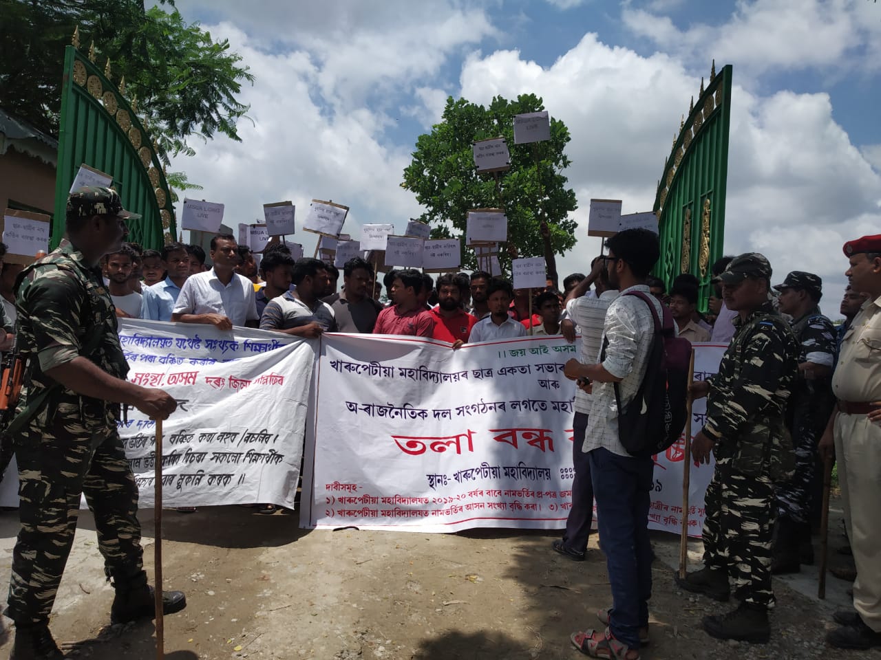 ফখৰুল ইছলাম, দৰংঃ যোৱা বৰ্ষৰ দৰেই এইবাৰো নাম ভৰ্ত্তিক লৈ দৰঙৰ খাৰুপেটীয়া মহাবিদ্যালয়ত উত্তপ্ত পৰিস্থিতি, বঞ্চিত ছাত্ৰ-ছাত্ৰীৰ প্ৰতিবাদী কাৰ্যসূচী ৰূপায়ন। আৰক্ষী অৰ্ধসামৰিক বাহিনী মোতায়েন। এঘণ্টাৰো অধিক সময় ধৰি চলিল এই প্ৰতিবাদী কাৰ্যসূচী।