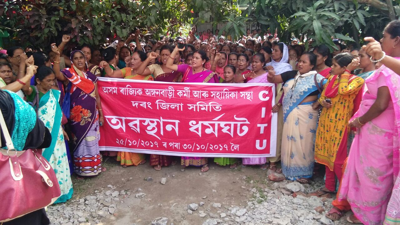 অংগনবাড়ী কৰ্মী-সহায়িকাৰ মাননি বৃদ্ধি কৰা, অংগনবাড়ী কেন্দ্ৰৰ ঘৰসমূহ পুনৰ নিৰ্মাণ কৰা, কৰ্মীসকলক অৱসৰকালীন সাহাৰ্য্য প্ৰদান কৰা, মিনি অংগনবাড়ী কেন্দ্ৰসমূহক পুৰ্ণাঙ্গ কেন্দ্ৰলৈ ৰূপান্তৰ কৰা, কেন্দ্ৰসমূহৰ ভাড়াবোৰ নিয়মিতভাৱে আদায় দিয়াৰ দাবীত জিলা সমাজ কল্যান বিষয়াৰ কাৰ্যালয় চৌহদত ধৰ্ণা কাৰ্যসূচী ৰূপায়ন কৰি চৰকাৰৰ বিৰুদ্ধে ক্ষোভ প্ৰকাশ কৰে।