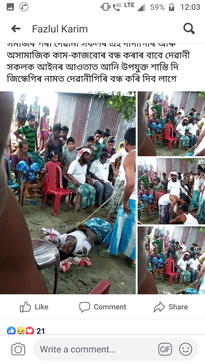 ঘটনাটোক লৈ অঞ্চলটোৰ লগতে সমগ্ৰ দৰং জিলাতেই বিৰূপ প্ৰতিক্ৰিয়াৰ সৃষ্টি হৈছে৷ উল্লেখ্য যে, ঘটনা সন্দৰ্ভত জানিব পৰা মতে ঢলপুৰ কিৰাকাটা আজমল হকৰ পুত্ৰই গাঁৱৰে এজনী ছোৱালী লৈ এসপ্তাহ পূৰ্বে পলাই যায়। ঘটনা সন্দৰ্ভত অঞ্চলটোৰে কেইজনমান দেৱানী জানিবলৈ পাই গাঁৱতে ল’ৰাজনৰ পিতৃ আজমল হকক ঘৰৰপৰা ওলাই আনি ৰাজহুৱা স্থানত হাত ভৰি বান্ধি অত্যাচাৰ চলোৱা হয়৷