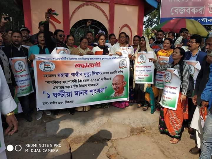 ডিব্ৰগড়ঃ বুধবাৰে দুপৰীয়া প্ৰায় ১২•৩০ বজাত ডিব্ৰুগড় ফুলবাগানৰ কংগ্ৰেছ ভৱনৰ সমীপত কংগ্ৰেছ দ’লৰ জিলা সভাপতি এটুৱা মুণ্ডা ডাঙৰীয়াৰ নেতৃত্বত মহামানৱ মহাত্মা গান্ধী মৃত্যুৰ লগত সংগতি ৰাখি এক মানৱ শৃংখল অভিযান আয়োজন হয়।
