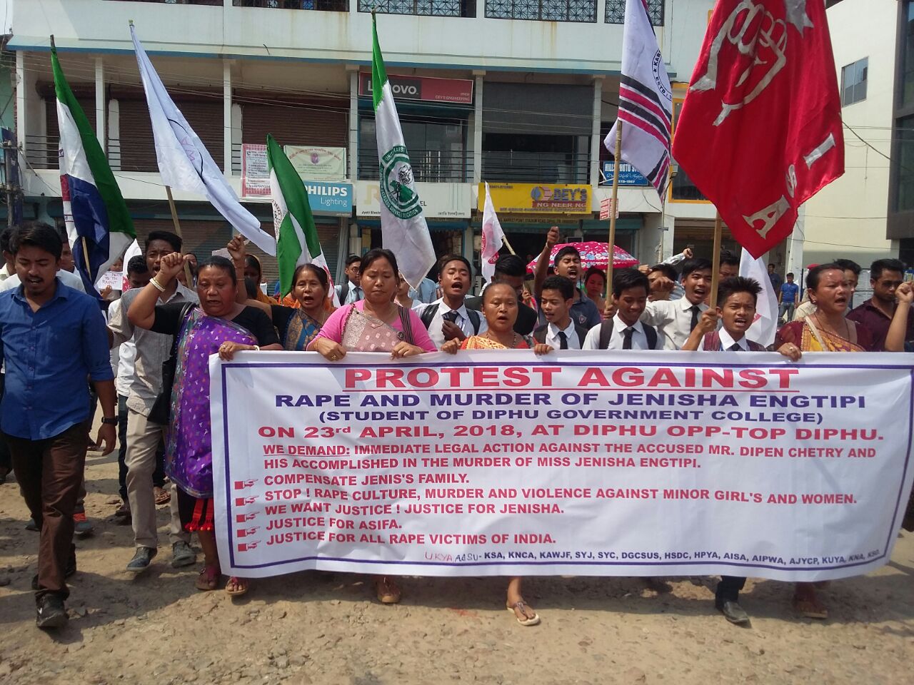 Home ৰাজ্যডিফুত ৰাজপথলৈ ওলাই আহিল মহিলা-যুৱতী, জেনিছা হত্যাকাৰীক ফাঁচী দিয়াৰ দাবী