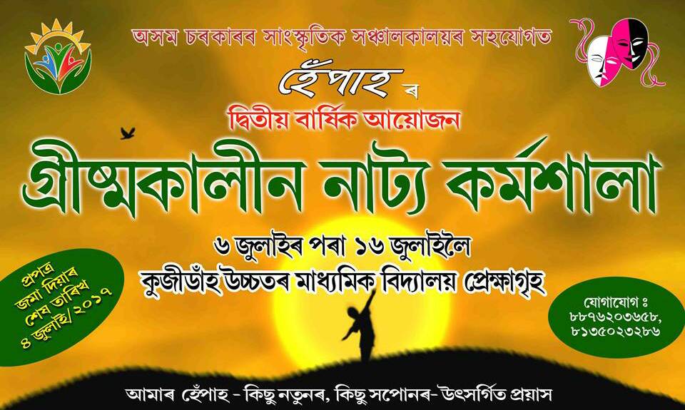 নগাঁওঃ নগাঁও জিলাৰ সাংস্কৃতিক তথা সামাজিক উত্তৰণৰ লক্ষ্য আগত ৰাখি ২০১৬ বর্ষত আত্মপ্রকাশ কৰা ‘হেঁপাহ’ৰ উদ্যোগত তথা অসম চৰকাৰৰ সাংস্কৃতিক সঞ্চালকালয়ৰ সহযোগত আগন্তুক গ্ৰীষ্মকালীন বন্ধৰ লগত সংগতি ৰাখি ৬ জুলাইৰ পৰা ১৬ জুলাইলৈ দ্বিতীয় বার্ষিক এঘাৰ দিনীয়া এখনি নাট্য কর্মশালাৰ আয়োজন কৰা হৈছে।