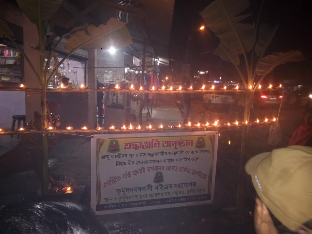 দুলীয়াজানঃ জম্মু-কাশ্মীৰৰ পুলৱামাত যোৱা ১৪ ফেব্ৰুৱাৰীত পাক সমৰ্থিত সন্ত্ৰসবাদীয়ে কৰা আক্ৰমণত নিহত হোৱা ৪৪ জন ছহিদৰ আত্মাৰ সদগতিৰ অৰ্থে বুধবাৰেও শোকত ম্ৰিয়মান হৈ আছে দুলীয়াজানবাসী ৰাইজ।