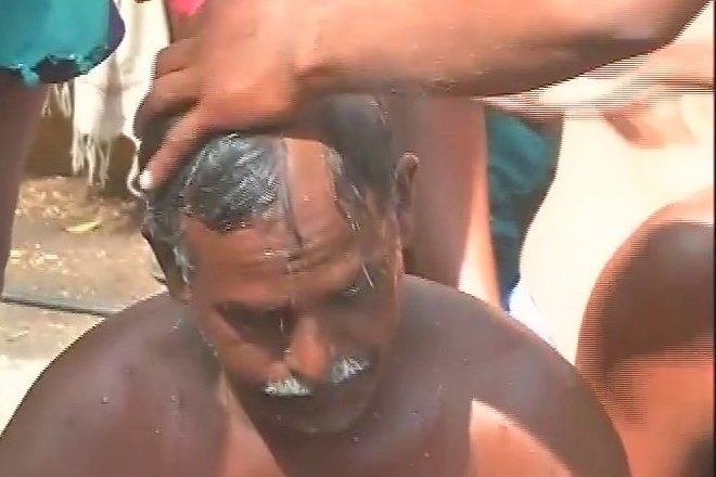 নতুন দিল্লীঃ হাতত মৃত কৃষকৰ লাওখোলা লৈ নায্যপ্ৰাপ্তিৰ যুঁজ অব্যাহত ৰাখিছে কৃষকে। ঋণ ৰেহাই তথা খৰাঙৰ বাবে সাহায্যৰ দাবীৰে আজি সামূহিক মুণ্ডন কাৰ্যসূচীৰে যন্তৰ-মন্তৰ প্ৰতিবাদমুখৰ কৰি তোলে তামিলনাডুৰ কৃষকসকলে৷