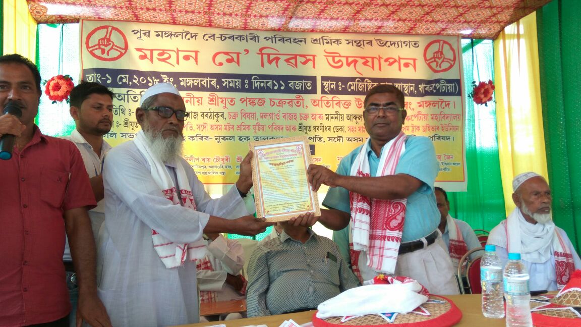 খাৰুপেটীয়াঃ দৰং জিলাৰ পূৱ মঙলদৈ বেচৰকাৰী পৰিবহন সন্থাই বিভন্ন কাৰ্যসূচীৰে শ্ৰমিক দিৱস উদযাপন কৰে মঙলবাৰে। দিনৰ ১১ বজাত খাৰুপেটীয়াৰ মেজেষ্টিক বাছ আস্থানত সদৌ অসম মটৰ শ্ৰমিক যুটীয়া পৰিষদৰ সভাপতি নুৰুল হক তালুকদাৰৰ সভাপতিত্বত অনুষ্ঠিত হয় মুকলি সভা।