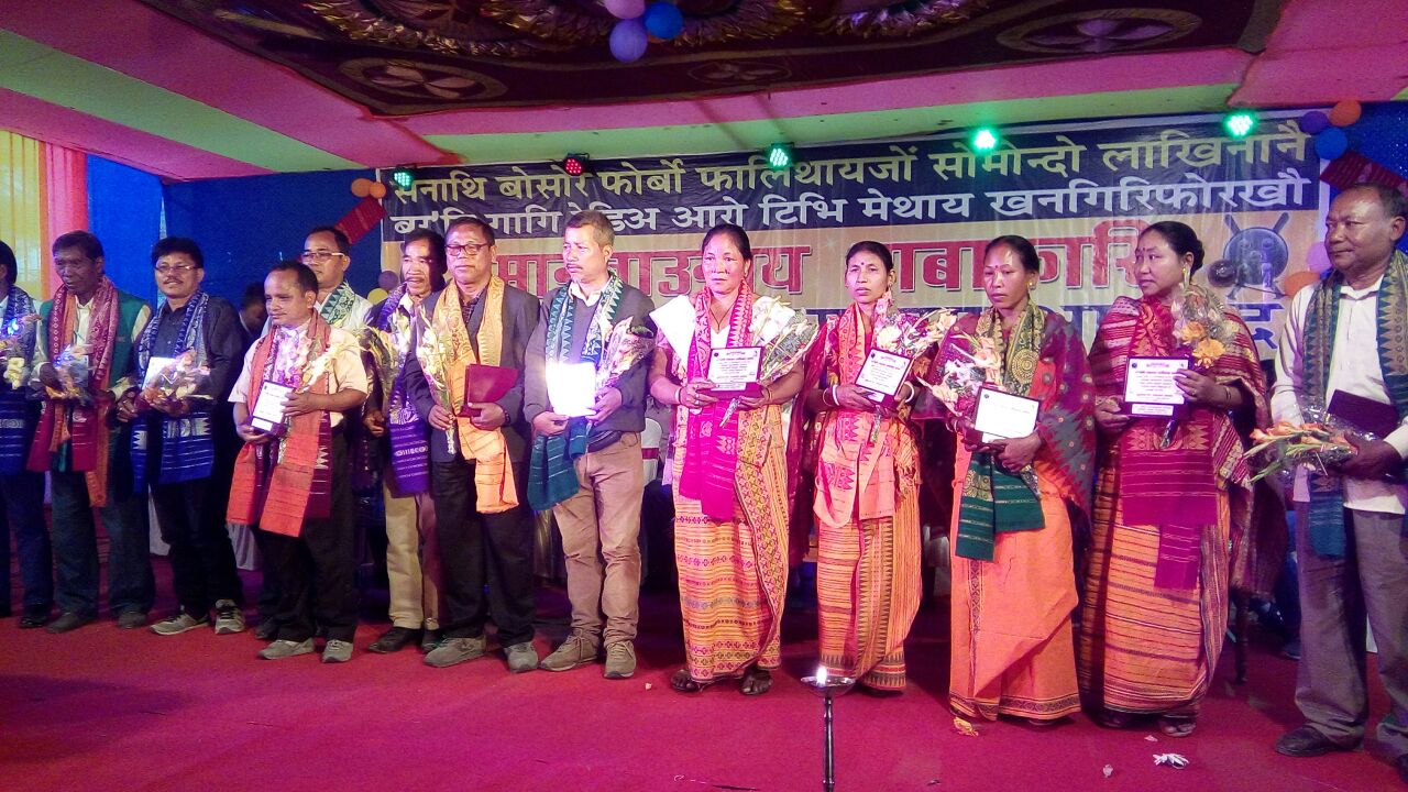 বাক্সা জিলাৰ গোৰেশ্বৰৰ বেঙেনাহাটী প্ৰেক্ষাগৃহত এবছুৰ পঞ্চাশ বছৰ পূৰ্তি উপলক্ষে সোণালী জয়ন্তীৰ বিভিন্ন কৰ্যসূচীৰ সৈতে সংগতি ৰাখি শিল্পীসকলক সম্বৰ্ধনা যাচে৷ এবছুৰ কেন্দ্ৰীয় সমিতিৰ সাধাৰণ সম্পাদক লৰেন্স ইছলাৰীয়ে আঁতধৰা বিশেষ সম্বৰ্ধনা অনুষ্ঠানত বড়ো সংস্কৃতিত বিশেষ অৰিহণা যোগাই অহা এশ গৰাকী জ্যেষ্ঠ শিল্পীক সম্বৰ্ধনা জ্ঞাপন কৰে৷