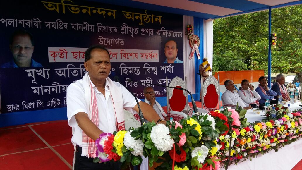 আজাৰাঃ পলাশবাৰী সমষ্টিৰ বিধায়ক প্ৰণৱ কলিতাই দেওবাৰে সমষ্টিৰ কৃতী ছাত্ৰ-ছাত্ৰীক সম্বৰ্ধনা জনায়৷ মিৰ্জাস্থিত গড়কাপ্তানি বিভাগৰ কাৰ্যালয়ত অনুষ্ঠিত এখন সভাত হাইস্কুল শিক্ষান্ত পৰীক্ষাত সুখ্যাতিৰে উত্তীৰ্ণ ছাত্ৰ-ছাত্ৰীক সম্বৰ্ধনা জনায় বিধায়কগৰাকীয়ে।