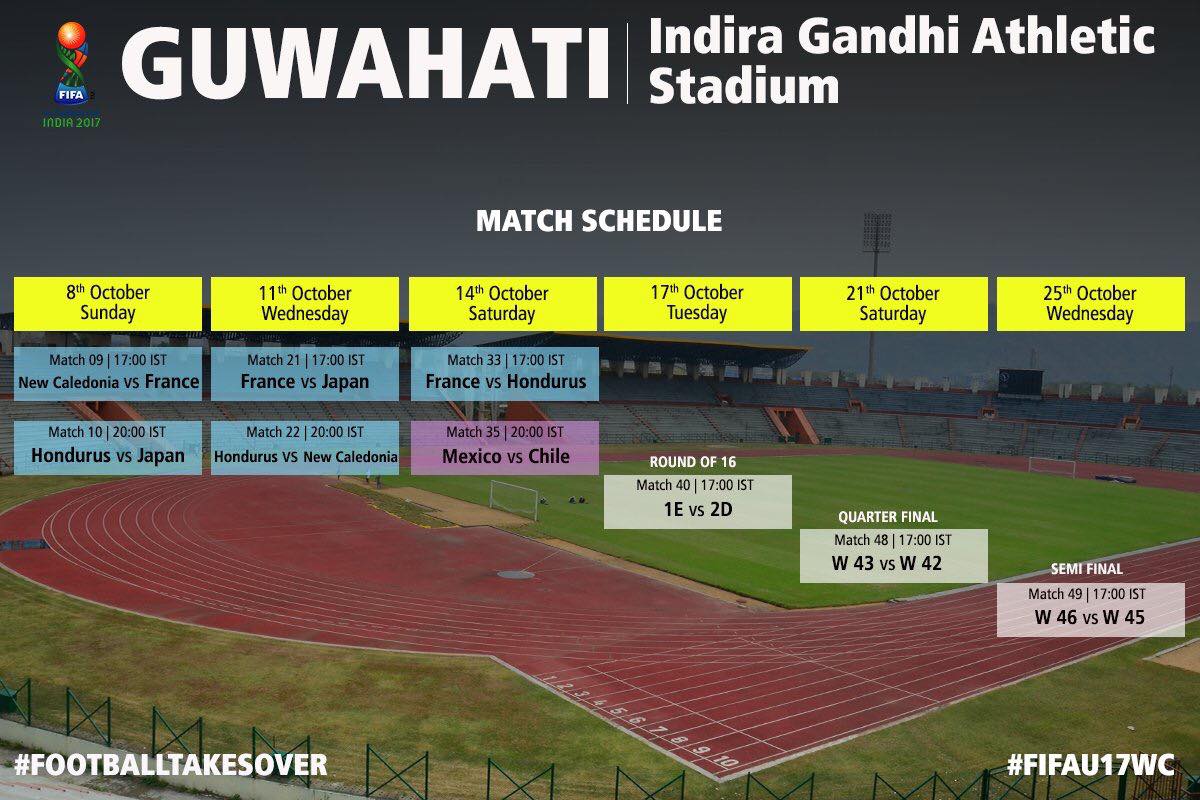 টুৰ্ণামেণ্টৰ প্ৰথমখন মেচ ৰাজধানী চহৰ দিল্লীৰ জৱাহৰলাল নেহৰু ষ্টেডিয়ামত অনুষ্ঠিত হ’ব। এইখন খেলত ভাৰতৰ অনুৰ্ধ-১৭ দলটো মাৰ্কিন যুক্তৰাষ্ট্ৰৰ মুখামুখি হ’ব।