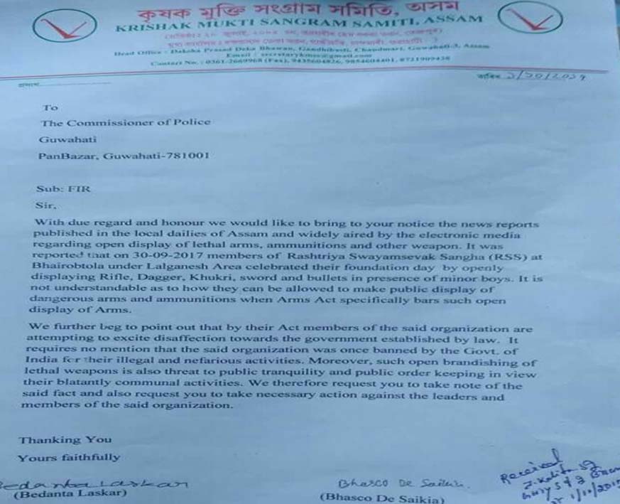 Home ৰাজ্যঅস্ত্ৰ পূজন, আৰএছএছৰ বিৰুদ্ধে কেএমএছএছৰ এজাহাৰ