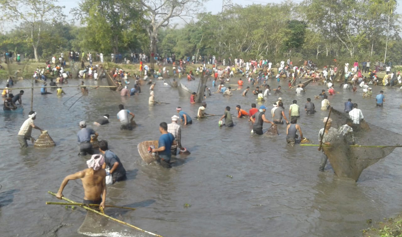 বিভিন্ন প্ৰকাৰৰ পিঠা-পনা, জা-জলপান, দৈ আদিৰে ঘৰখন উভৈনদী হৈ পৰে। এই ভোগালীৰ বতৰত পুখুৰী-বিল আদি জলাশয়ত উৰুকাৰ দিনা ৰাজহুৱাকৈ মাছ ধৰাৰ এক পৰম্পৰা পূৰ্বৰে পৰা প্ৰচলিত হৈ আহিছে । গাঁৱৰ সকলো মিলিজুলি স্ফূৰ্তি-তামাচাৰে জাকৈ-জুলুকি, পল, জাল আদিৰে সমূহীয়াকৈ মাছ ধৰি এসাজ খোৱাৰ আনন্দই সুকীয়া। পুৰণি দিনৰ এনে পৰম্পৰা ৰক্ষা কৰি আজি নগাঁও জিলাৰ অন্তৰ্গত জাজৰিৰ বগৰিগুৰিৰ ৰাইজে ঐতিহাসিক ধোৱাখোৱা পুখুৰীত সমূহীয়াকৈ মাছ ধৰি আনন্দত মতলীয়া হৈ পৰা দেখা যায় ৷