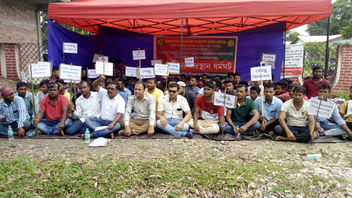বান-গৰাখহনীয়াক ৰাষ্ট্ৰীয় সমস্যা হিচাপে ঘোষণা কৰাৰ দাবীত বিশ্বনাথত নেমছুৰ তিনি ঘন্টীয়া অৱস্থান ধৰ্মঘট